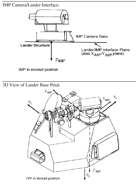 For more information on Mars Pathfinder coordinate systems, see the [MELLSTROM&LAU1996], [WELLMAN1996B], and [VAUGHAN1995] references. The [WELLMAN1996B] document in particular provides good coverage of the coordinate systems related to the IMP camera. Please note that where he used elevation ranges of 0 to 180 degrees, the MPF Project used -90 to +90 degrees.