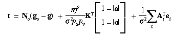 where the summations are over all points currently retained, n is the total number of these points, g represents the current parameter values, and go represents the a priori parameter values (initial approximations). The first term in (31) and (32) applies the a priori weight to the initial values, and the second term applies some weight to the constraints. These constraint terms mathematically have no effect on the solution, since the exact constraints are applied below in steps 3 and 5. However, they are necessary to prevent the solution without the constraints from being singular, and that will be computed first (in step 3, as (N-1t) before the constraint equation is applied. The scale factor chosen for these terms above cause them to have about the same magnitude as the result of the main summation for N, so that numerical accuracy is preserved.