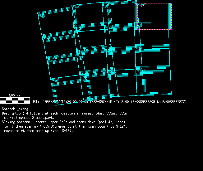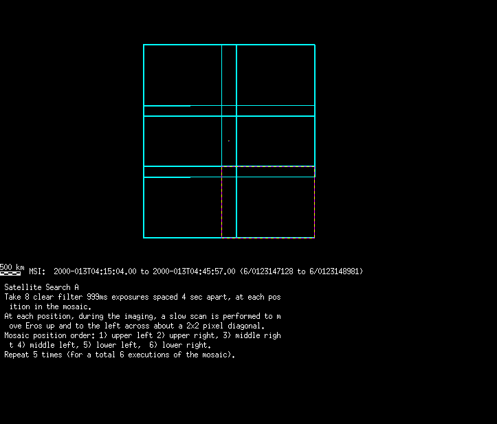 | MSI_SatSrchA | 2000-013 | 00010 | 0123147129-0123159932 | 2000-013T04:15:04 | 2000-013T07:48:27 | 29 | 0 | 288 | 0 | lossless | MSI_SatSrchA | 2x3 mosaic, 8 imgs slewing across 2x2 pixels at each position, repeat x5 | satsearches.txt | msi_satsrcha.gif | ||||