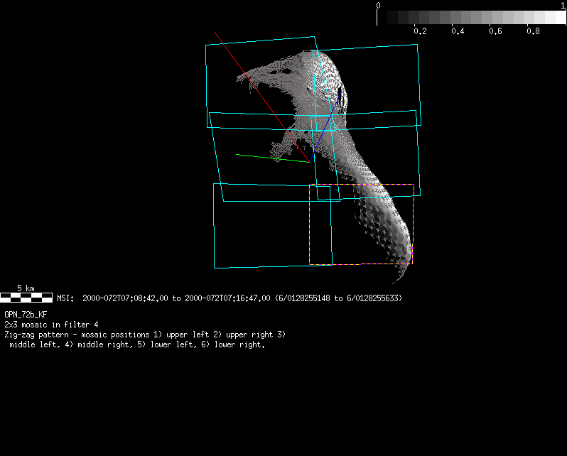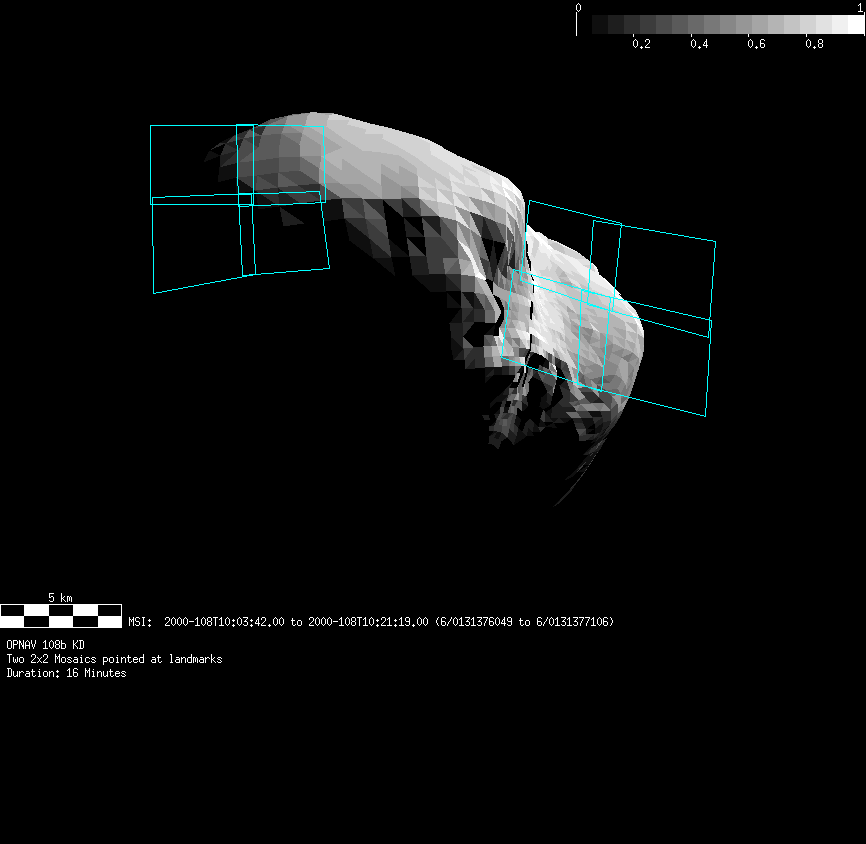| 69 km | 26.5 | OPN_115a_KD | 2000-115 | 00108 | 0131968549-0131969606 | 2000-115T06:38:41 | 2000-115T06:56:18 | 27 | 4 | 8 | 0 | table5 | OPN_115a_KD | 2 2x2 mosaics pointed to NAV landmarks | opnav.txt | opn_115a_kd.gif | ||