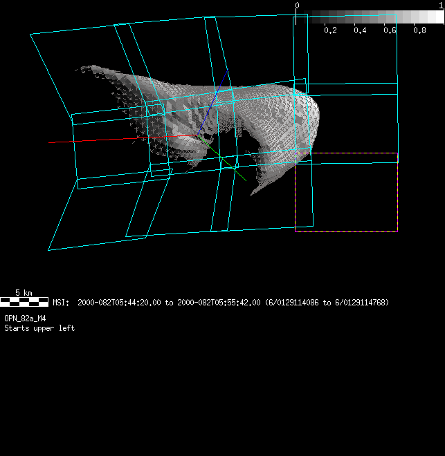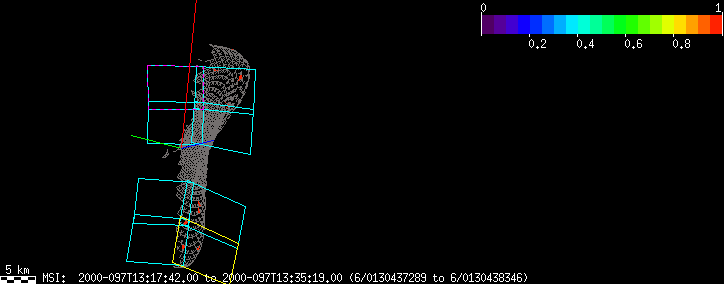 | 100 km | 27.4 | MSI_Feature_4Color_1 | 2000-113 | 00108 | 0131777827-0131780035 | 2000-113T01:39:59 | 2000-113T02:16:47 | 24,15 | 1,3,4,6 | 60 | 75 | table5 | MSI_Feature_4Color_1 | 2x2+1x1 color mosaics pointed at feature | color100.txt | msi_feature_4color_1.gif | ||