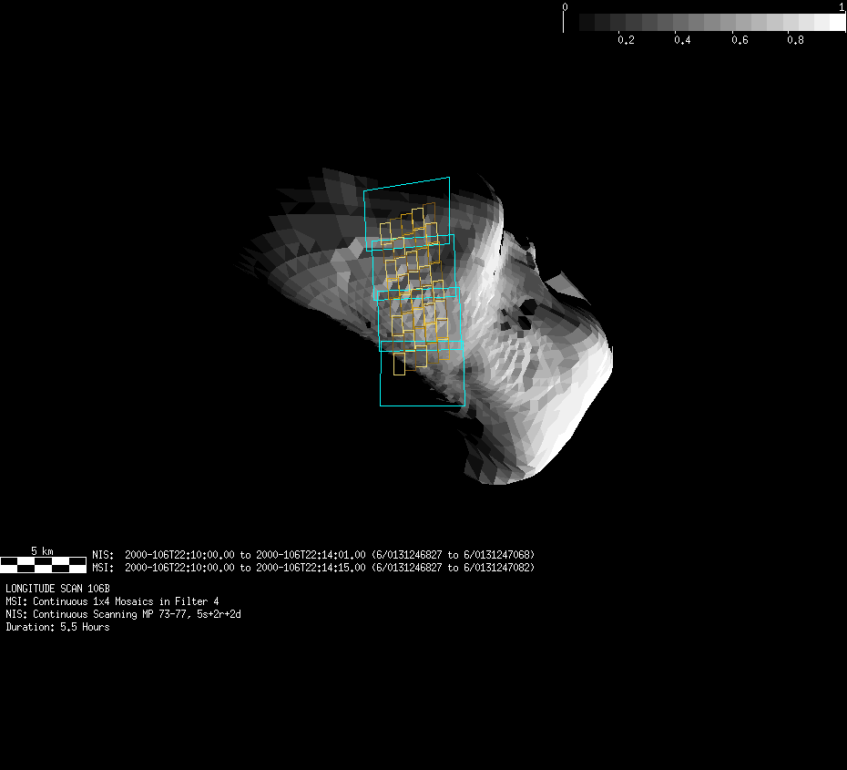 | 95 km | 24.2 | OPN_120c_KD | 2000-120 | 00115 | 0132452210-0132453267 | 2000-120T20:59:42 | 2000-120T21:17:19 | 27 | 4 | 3 | 0 | table5 | OPN_120c_KD | 2 2x2 mosaics pointed to NAV landmarks | opnav.txt | opn_120c_kd.gif | ||