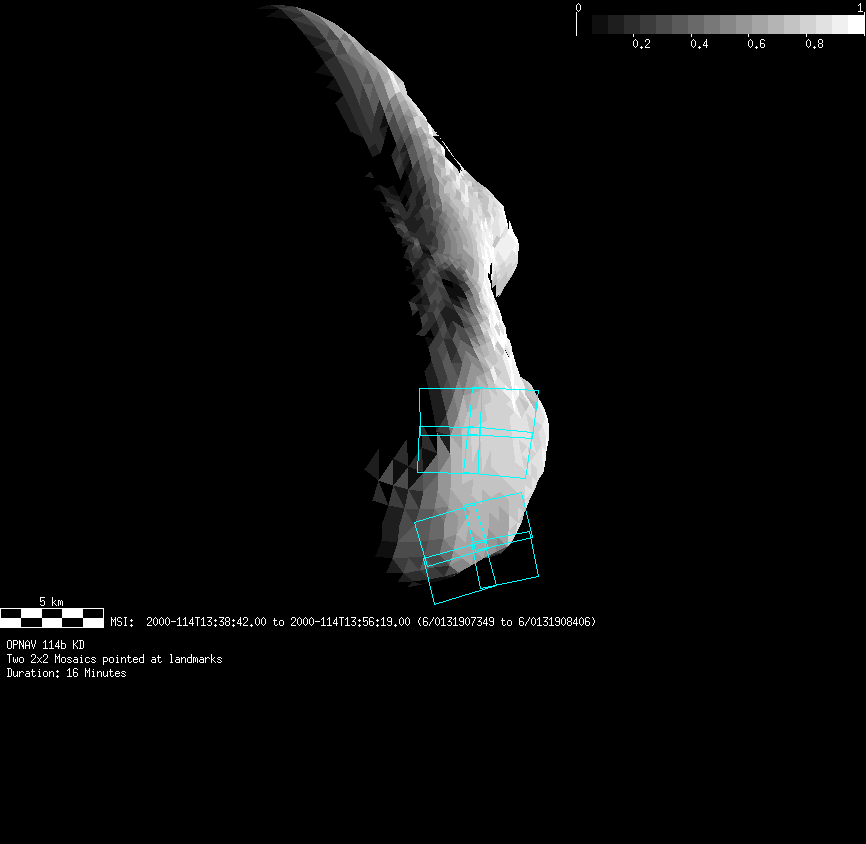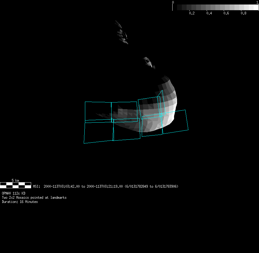 | 99 km | 26.2 | OPN_115c_KD | 2000-115 | 00115 | 0132023449-0132024506 | 2000-115T21:53:41 | 2000-115T22:11:18 | 27 | 4 | 8 | 0 | table5 | OPN_115c_KD | 2 2x2 mosaics pointed to NAV landmarks | opnav.txt | opn_115c_kd.gif | ||