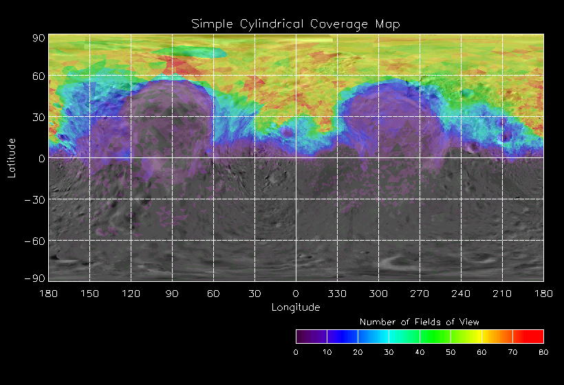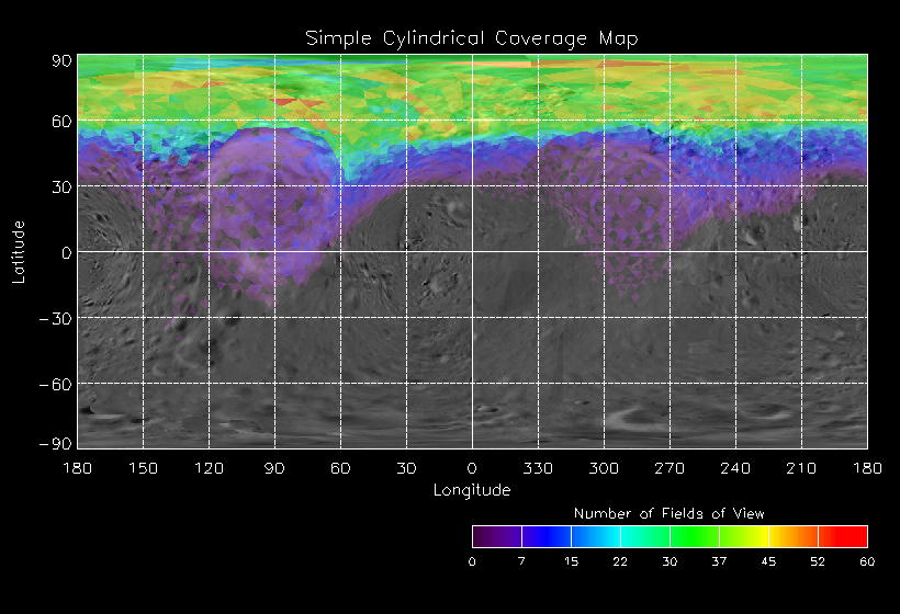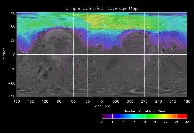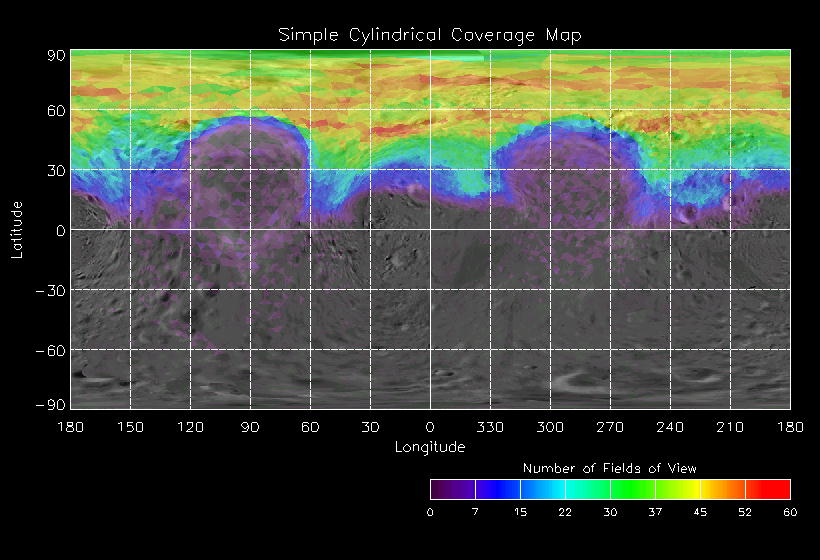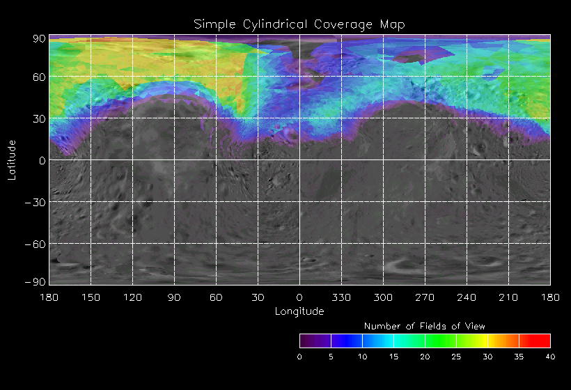 | JN | NISSouthPolar_A | 26-Mar | 2000_086 | 2:00:52 | 7:00:03 | 129446280 | 129464228 | 1192 | 6x7 mosaics | Narrow Slit; Mirror position 72 - 77; 16 sec spectra + 2rests + 4darks | one filter 4 image every 27 seconds | JN | NISSouthPolar_A | Cov | AveIoF | AveInc | AveEm | AvePhase | AveRes | Movie | |