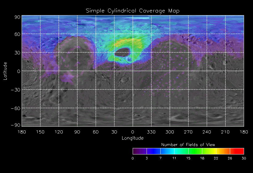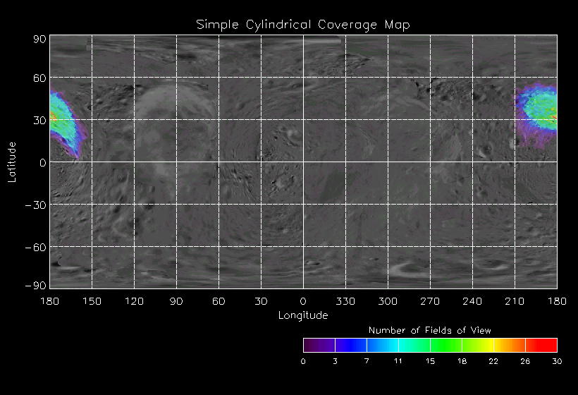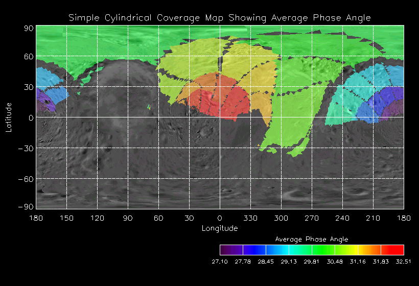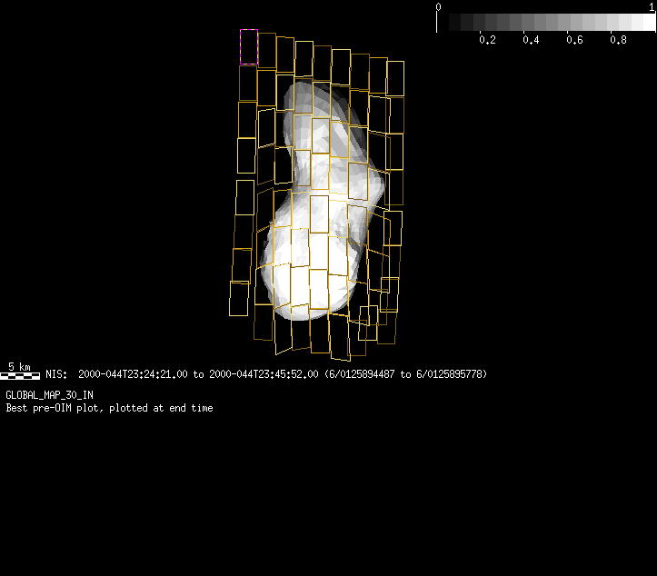 | GH | GLOBAL_MAP_30_IN | 13-Feb | 2000_044 | 23:24:23 | 23:46:14 | 125894489 | 125895798 | 82 | Take a full global map of the asteroid at one phase angle | Narrow Slit; Mirror position 296-304 (8 scans of 16 sec spectra+2r+4dark) | NIS Point to Eros +x axis, scan down x-axis to -x | GH | GLOBAL_MAP_30_IN | Cov | AveIoF | AveInc | AveEm | AvePhase | AveRes | Movie | Predict |