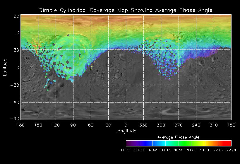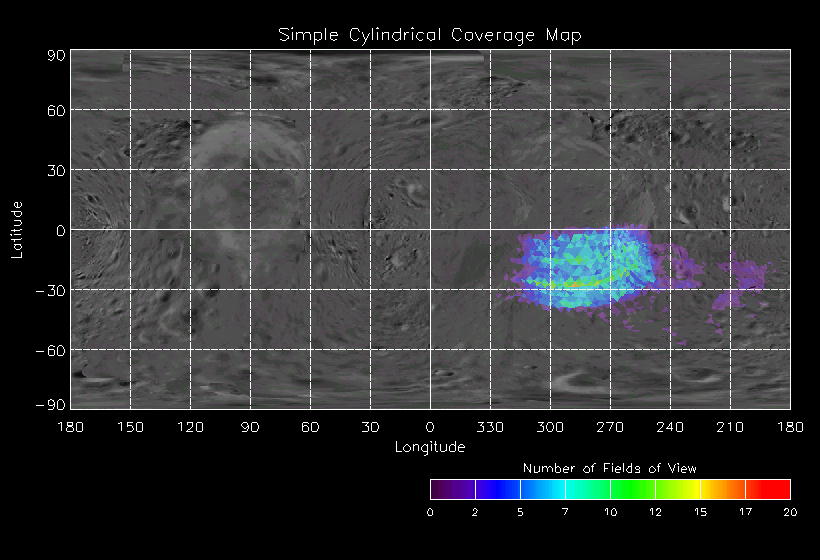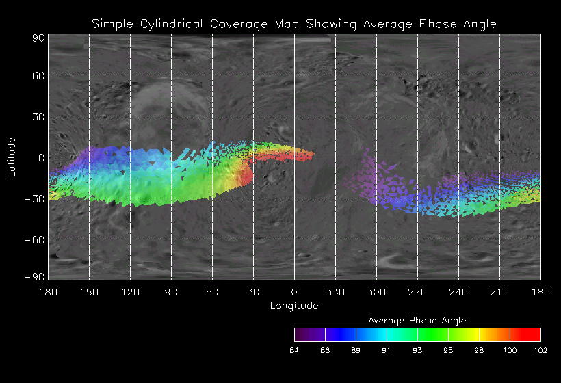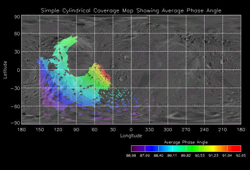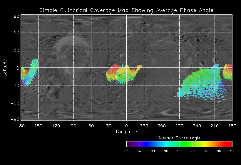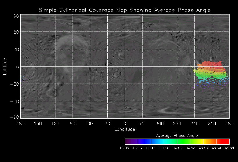 | Sub Phase | Observation Name | Date | DOY | UTC Start | UTC End | MET Start | MET End | # spectra | NIS Description | NIS Execution | Pointing Description | Sub Phase | Observation Name | Coverage Map | Ave I/F Map | Ave Inc Angle | Ave Em Angle | Ave Phase Angle | Ave Res | Movie | Predict |