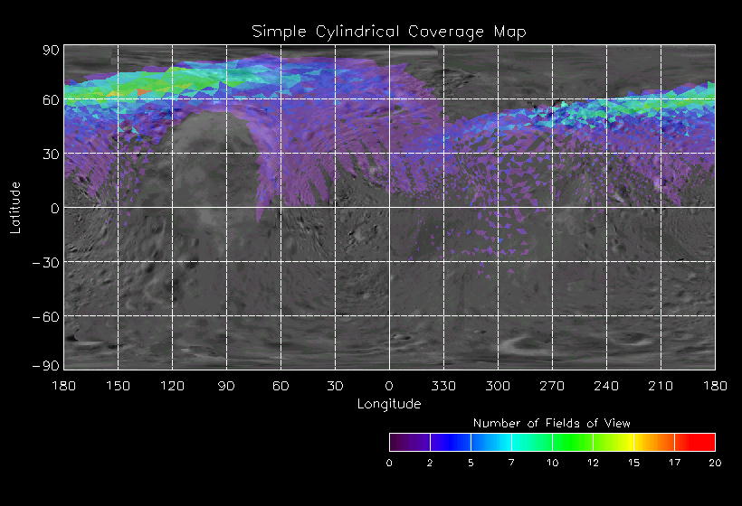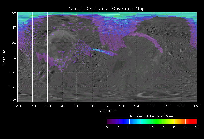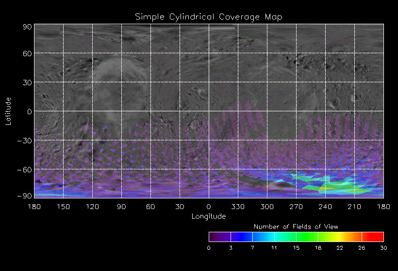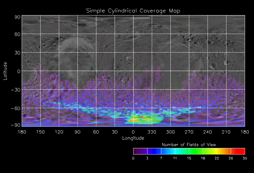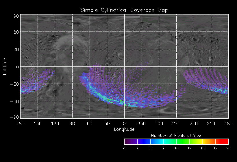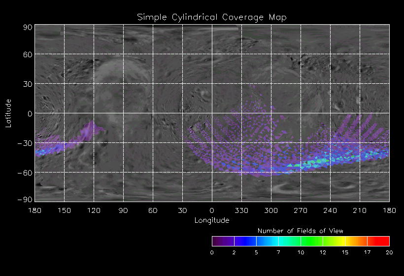| JO | NISSouthPolarLon | 27-Mar | 2000_087 | 23:40:01 | 4:28:36 | 129524229 | 129541541 | 4167 | 6x7 mosaics | Narrow Slit; Mirror position 72 - 78; 3 sec spectra + 0rests + 0darks | one filter 4 image every 27 seconds | JO | NISSouthPolarLon | Cov | AveIoF | AveInc | AveEm | AvePhase | AveRes | Movie | Predict |