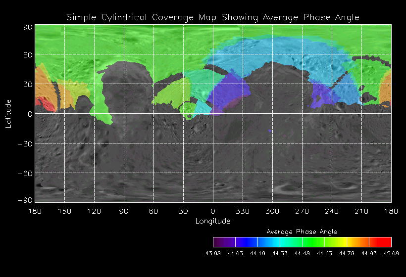 | GC | GLOBAL_MAP_45_IN | 13-Feb | 2000_044 | 14:52:53 | 15:01:29 | 125863799 | 125864313 | 36 | Take a full global map of the asteroid at one phase angle | Narrow Slit; Mirror position 185-190 (5 scans of 16 sec spectra+2r+4dark) | NIS Point to Eros +x axis, scan down x-axis to -x | GC | GLOBAL_MAP_45_IN | Cov | AveIoF | AveInc | AveEm | AvePhase | AveRes | Movie | Predict |