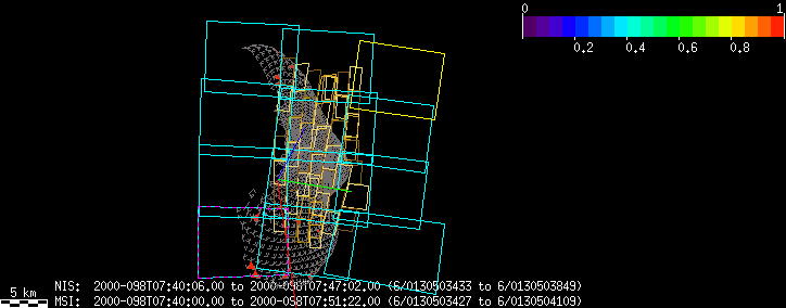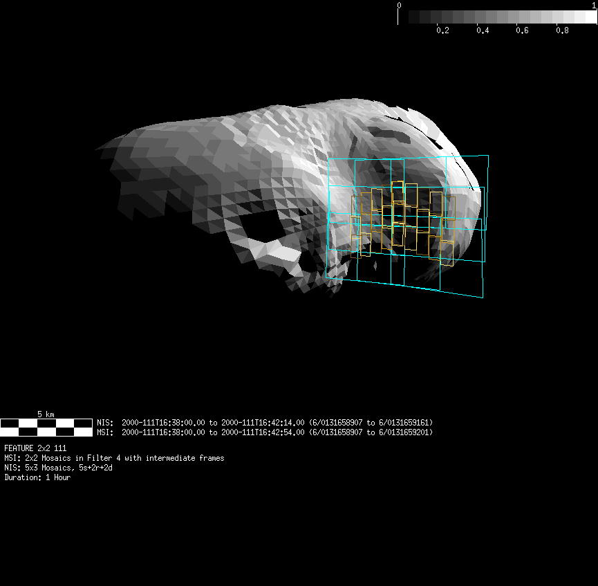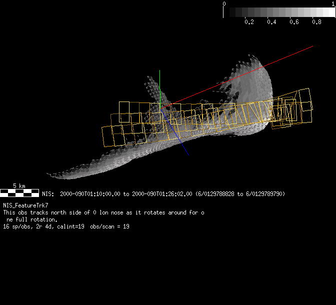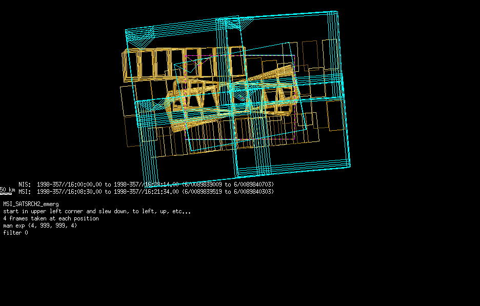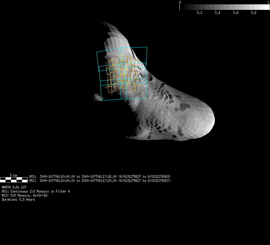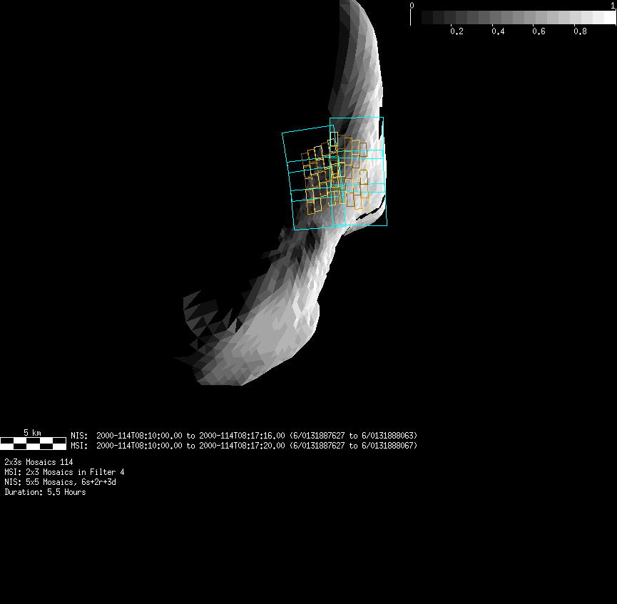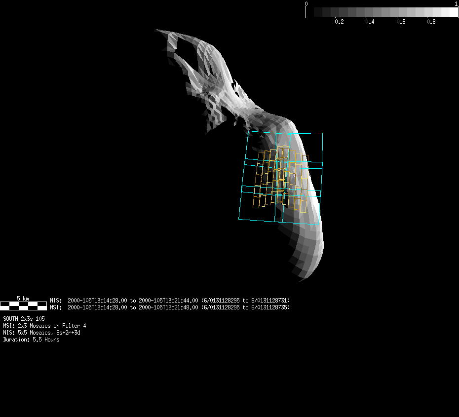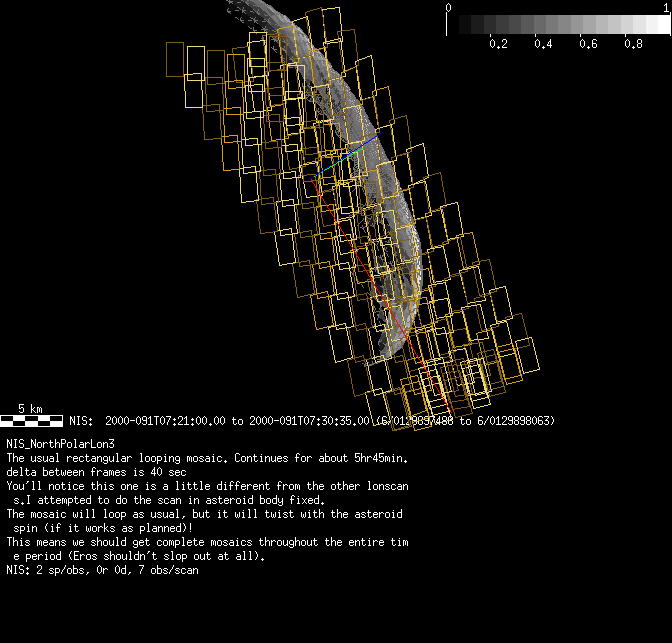 | FY | NIS Multispectral Rotation Seq. | 12-Feb | 2000_043 | 0:30:53 | 6:04:06 | 125725679 | 125745670 | 1380 | Observe Eros when it is 200 MSI pixels in size | Mirror position 73-77 with 16 sec spectra+ 2rests +4darks | MSI Point to Eros | FY | NIS Multispectral Rotation Seq. | Predict | |||||||