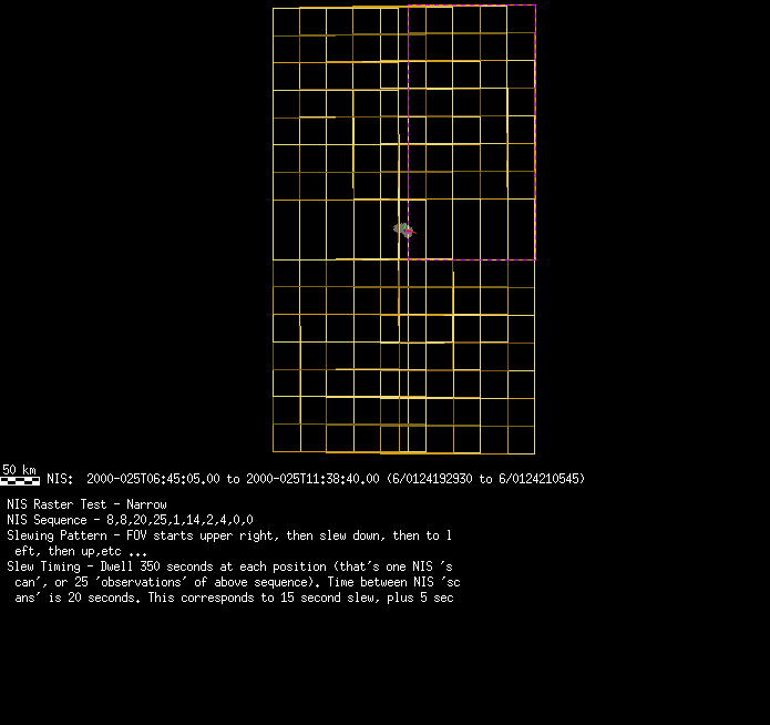| FO | NIS Nixel Raster Test narrow slit | 25-Jan | 2000_025 | 3:45:21 | 8:47:05 | 124182147 | 124200249 | 2405 | Calibration | Narrow Slit; 25x 14 sec spectra+ 2rests+ 4darks | 6x8 mosaic in NIS; MSI take 3 images taken at each position | FO | NIS Nixel Raster Test narrow slit | Predict | |||||||