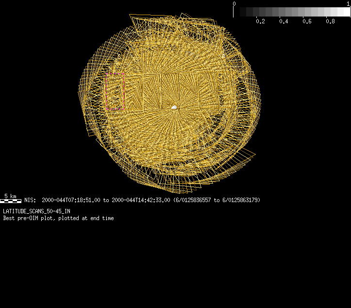 | GB | LAT_SCANS_50-45_IN | 13-Feb | 2000_044 | 7:18:53 | 14:42:55 | 125836559 | 125863199 | 1777 | Take spectra continuously | Narrow Slit; Mirror position 154-160 (16 sec spectra+2r+4dark) 222 executes | NIS Point to Eros nadir | GB | LAT_SCANS_50-45_IN | Cov | AveIoF | AveInc | AveEm | AvePhase | AveRes | Movie | Predict |