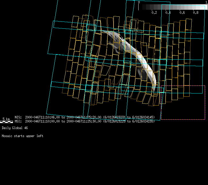 | NIS Global Color Seq Test | 19-Nov | 1998_323 | 3:47:10 | 3:58:35 | 86857442 | 86858127 | 46 | " | Mirror position 72-78 with 16 sec spectra +2rests +4darks | MSI Point to Eros | NIS Global Color Seq Test | ||||||||||