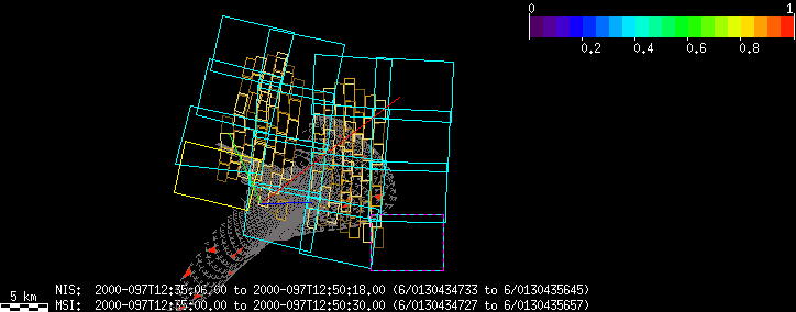 | BF | Moon MSI/NIS Coalign | 26-Jan | 1998_026 | 9:20:02 | 9:55:53 | 61216607 | 61218757 | 1445 | Calibrate NIS slit position and size with MSI FOV | Swap between Narrow and Wide Slit; Mirror position 75; 1sec spectra + 0rests + 0darks | Point NIS mirror position 75 to off Moon limb and scan across Moon :: Point MSI FOV center to off Moon limb and scan across Moon | BF | Moon MSI/NIS Coalign | ||||||||